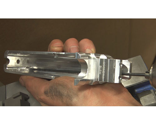 The last hole that needs to be drilled is the detent for the spring op rod. The spring op rod detent is a small pocket that is required in order for the op rod to stay correctly in place in the receiver when assembled.