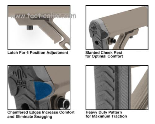 | • | Includes Polymer Stock, Mil-spec 6 Position Extension Tube, Buffer, Buffer Spring, Tear-drop Ring and Castle Nut |