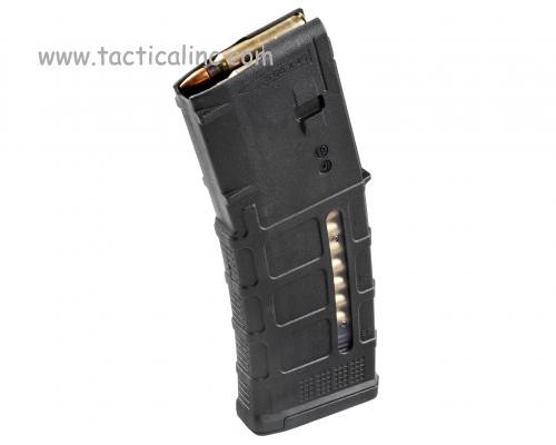 Made in the USA, the PMAG 30 GEN M3 Window is a 30-round 5.56x45 NATO polymer magazine for AR15/M4 compatible weapons that features transparent windows to allow rapid visual identification of approximate number of rounds remaining. In addition, a redesigned bolt catch notch in the rear of the magazine provides increased bolt catch clearance, while an over-travel stop on the spine helps ensure the magazine will not over-insert on compatible weapons. Low profile ribs and new aggressive front and rear texture gives positive control of the GEN M3 in all environments, and a paint pen dot matrix has been added to the bottom panel of the body to allow easy marking by the end user for identification. The new, easy to disassemble flared floorplate aids extraction and handling of the magazine while providing improved drop protection, but is slightly slimmer than before for better compatibility with tight double and triple magazine pouches. An included pop-off impact/dust cover can optionally be used to minimize debris ntrusion and protect against potential damage to the top cartridge during storage and transit. NOTE: This item is also compatible with HK 416/MR556A1/M27 IAR, British SA-80, FN SCARN MK 16/16S, and others.